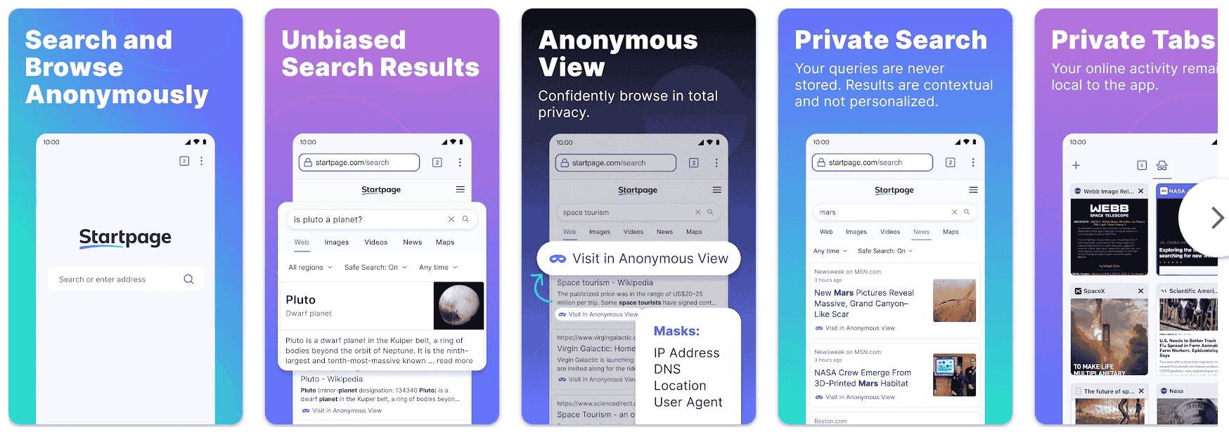 Mobilna wersja wyszukiwarki Startpage przenosi "najbardziej prywatne wyszukiwanie na świecie" bezpośrednio na Twój telefon. Działa jako pośrednik między Tobą a Google, wycinając wszystkie dane śledzące.