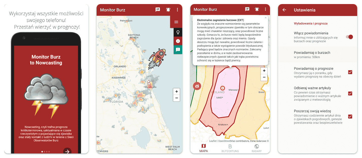 Jeśli Twoim priorytetem są alerty burzowe, bezkonkurencyjna pozostaje Monitor Burz. Aplikacja posiada system powiadomień działający niemal w czasie rzeczywistym.