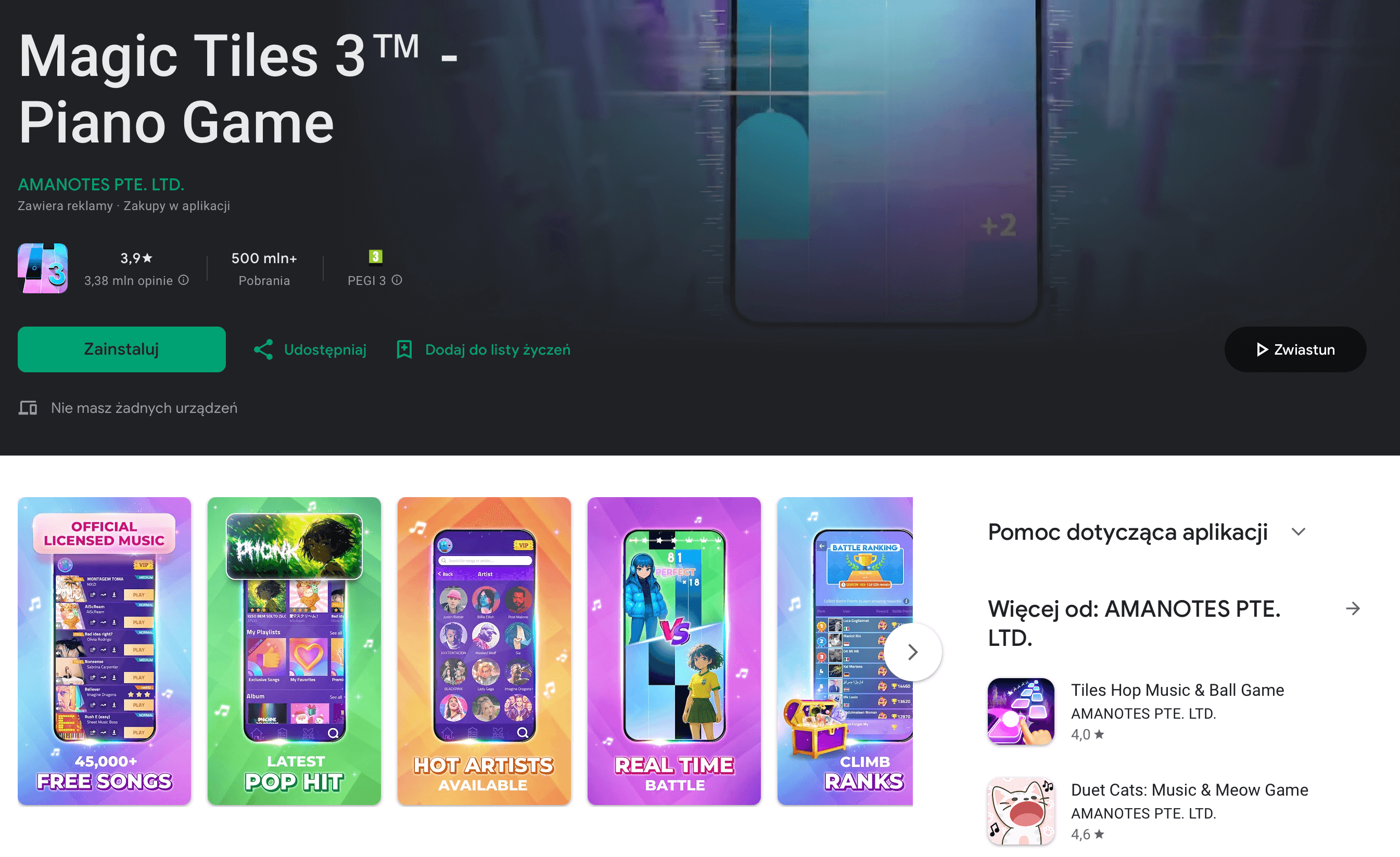 Kategoria: Gry muzyczne | Wydawca: AMANOTES PTE. LTD.