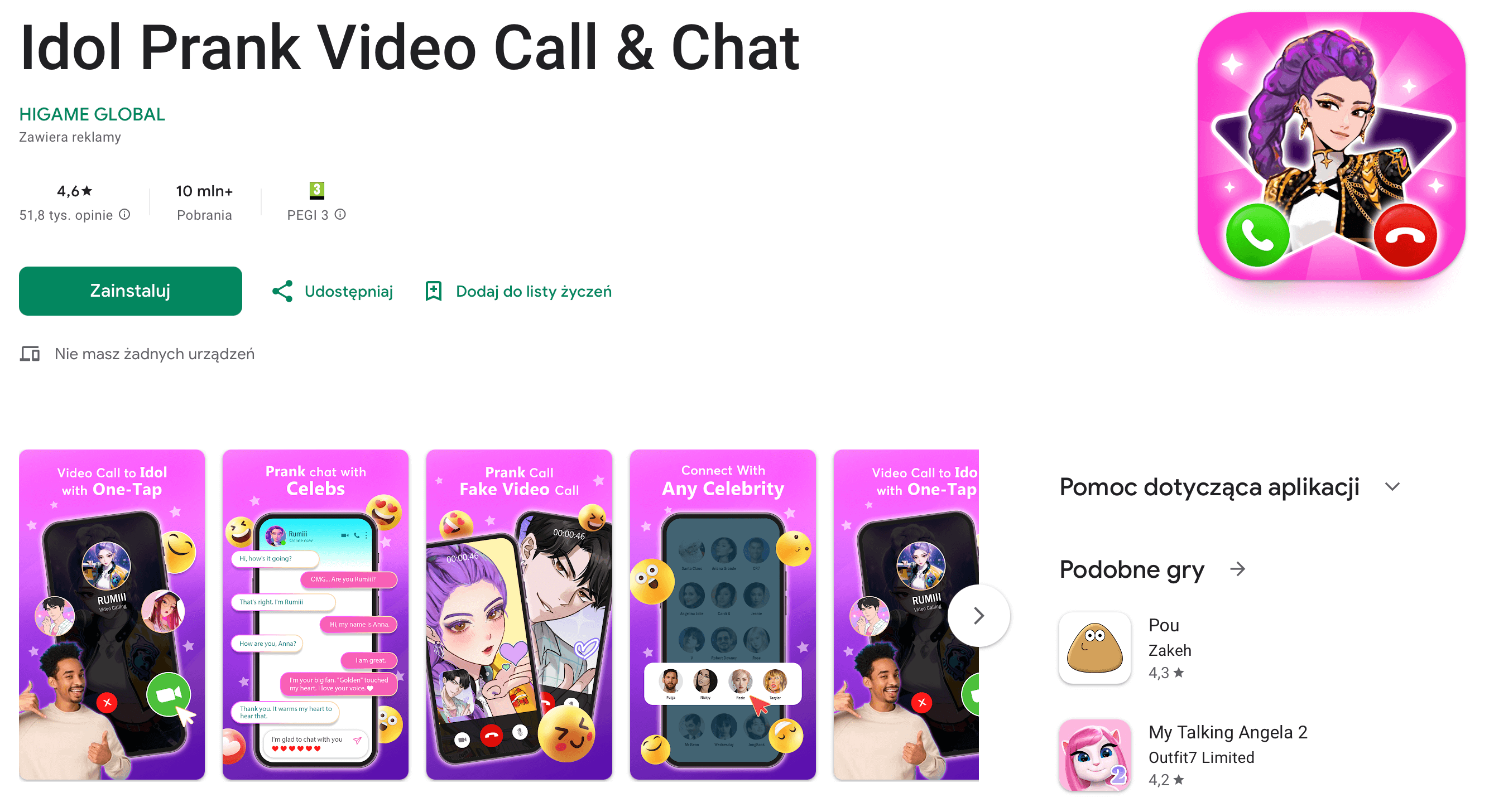 Gra bazuje na żartach i fejkowych połączeniach wideo z „idolami”. To raczej interaktywna zabawka niż klasyczna gra, mocno nastawiona na humor.