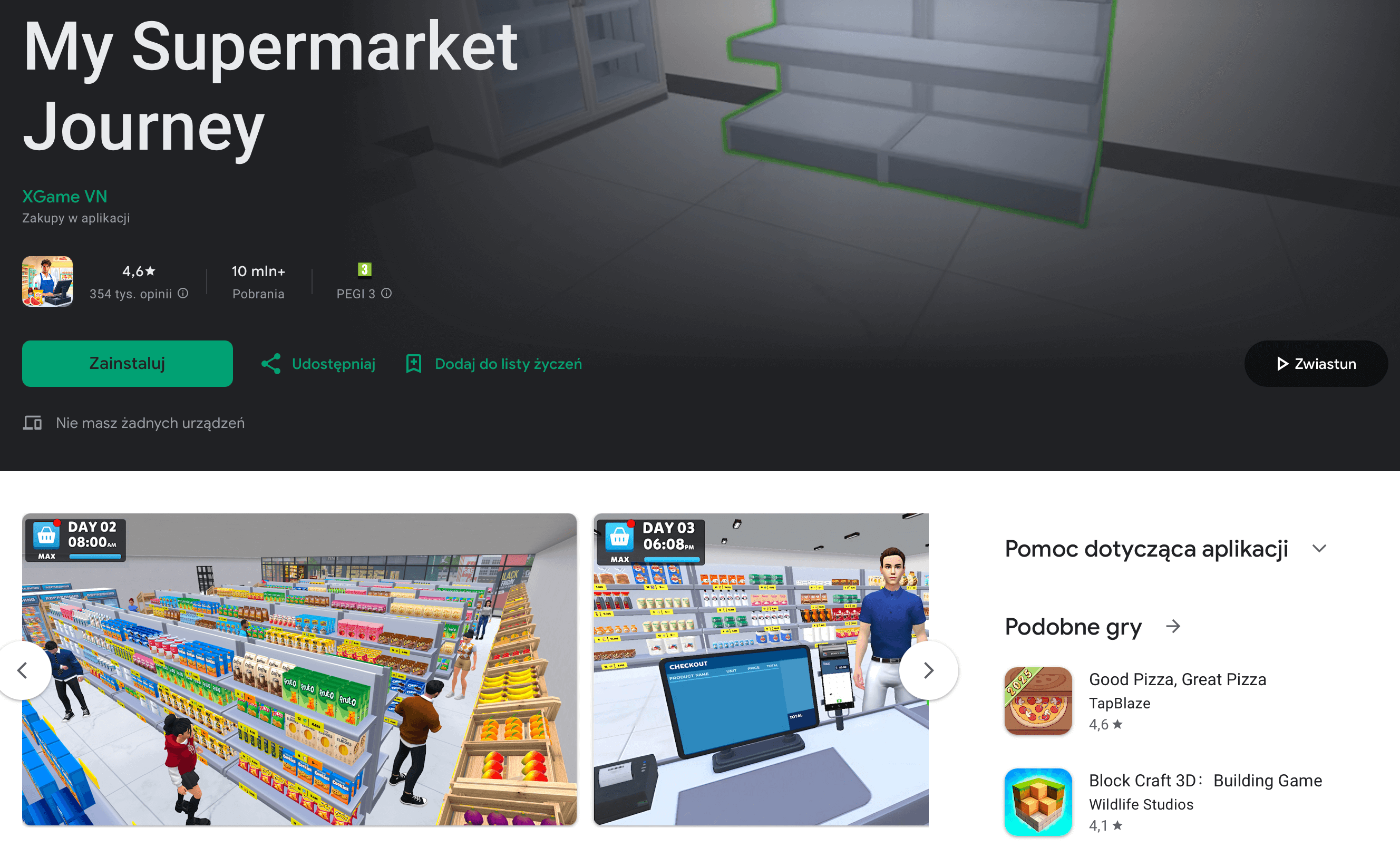 Zarządzasz własnym supermarketem: uzupełniasz półki, obsługujesz klientów i rozwijasz sklep. To lekka symulacja z elementami zarządzania czasem.