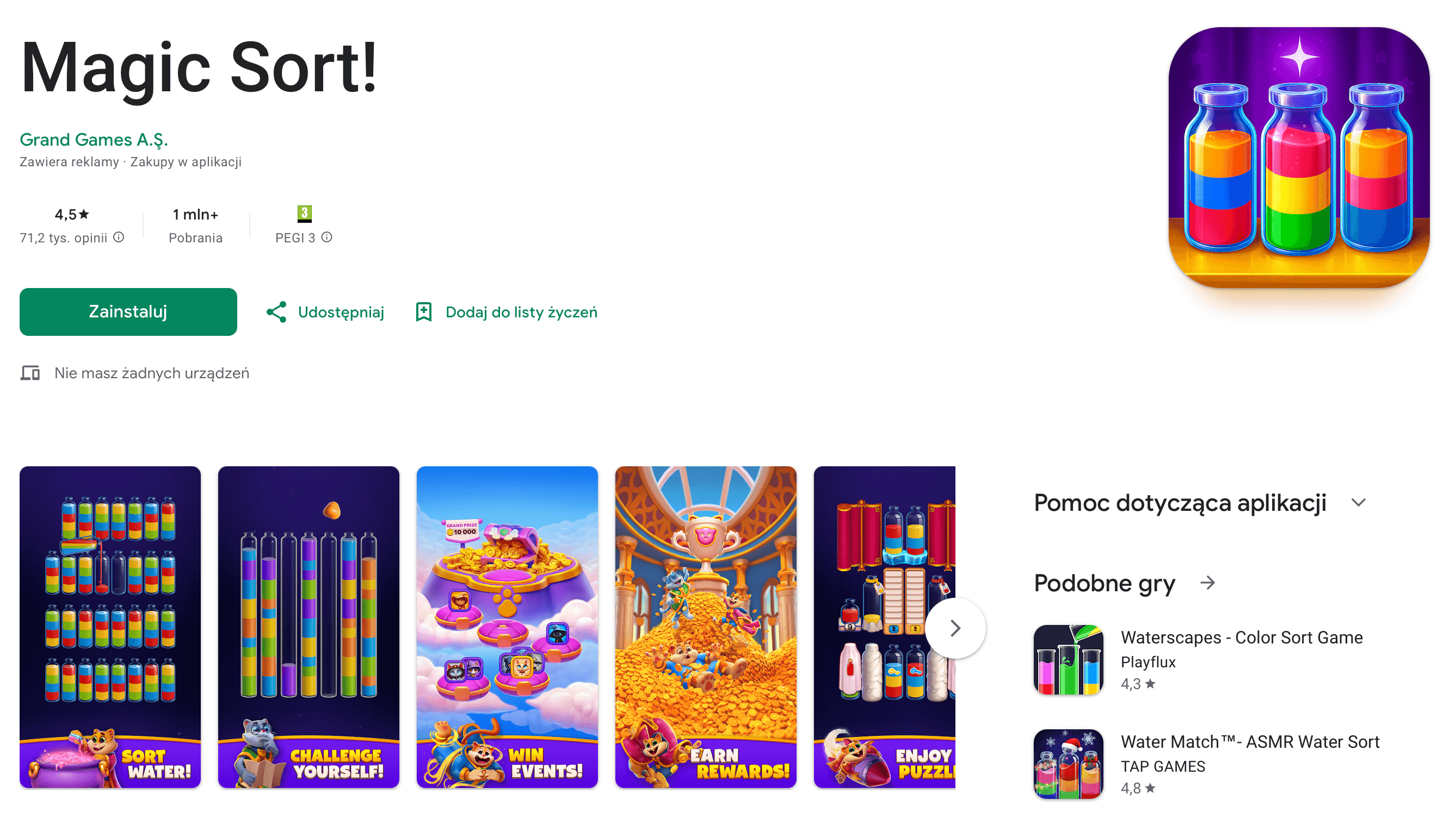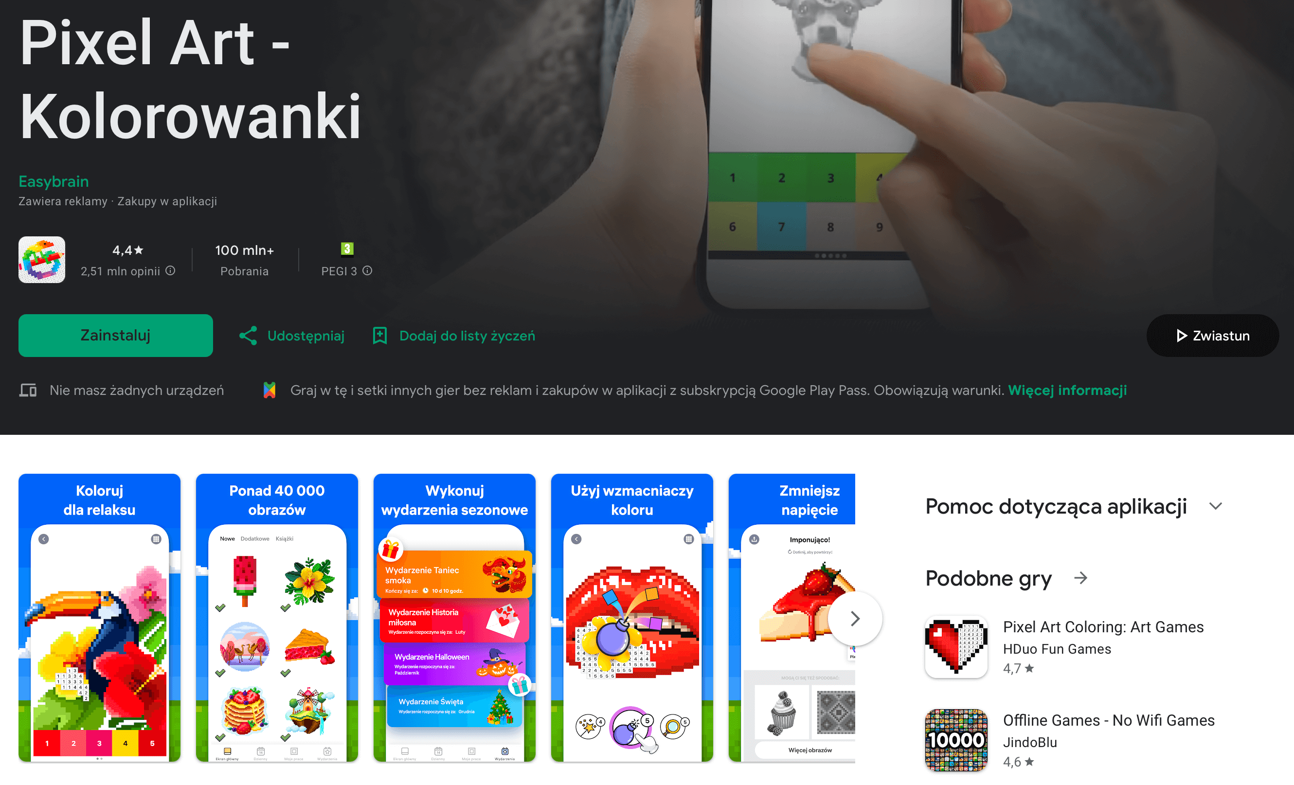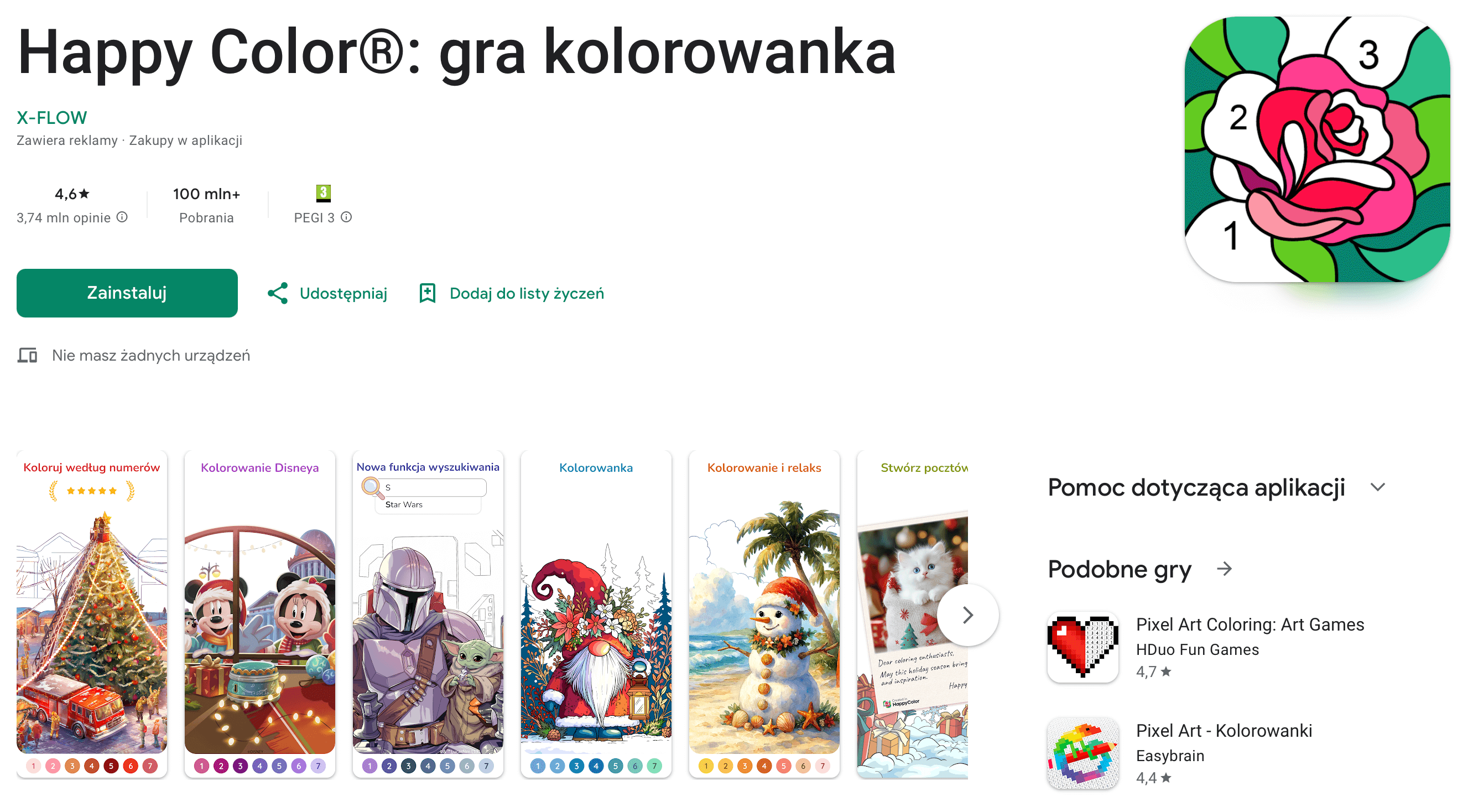 - relaks przy kolorowankach i prostych łamigłówkach (Happy Color, Pixel Art, Magic Sort!),