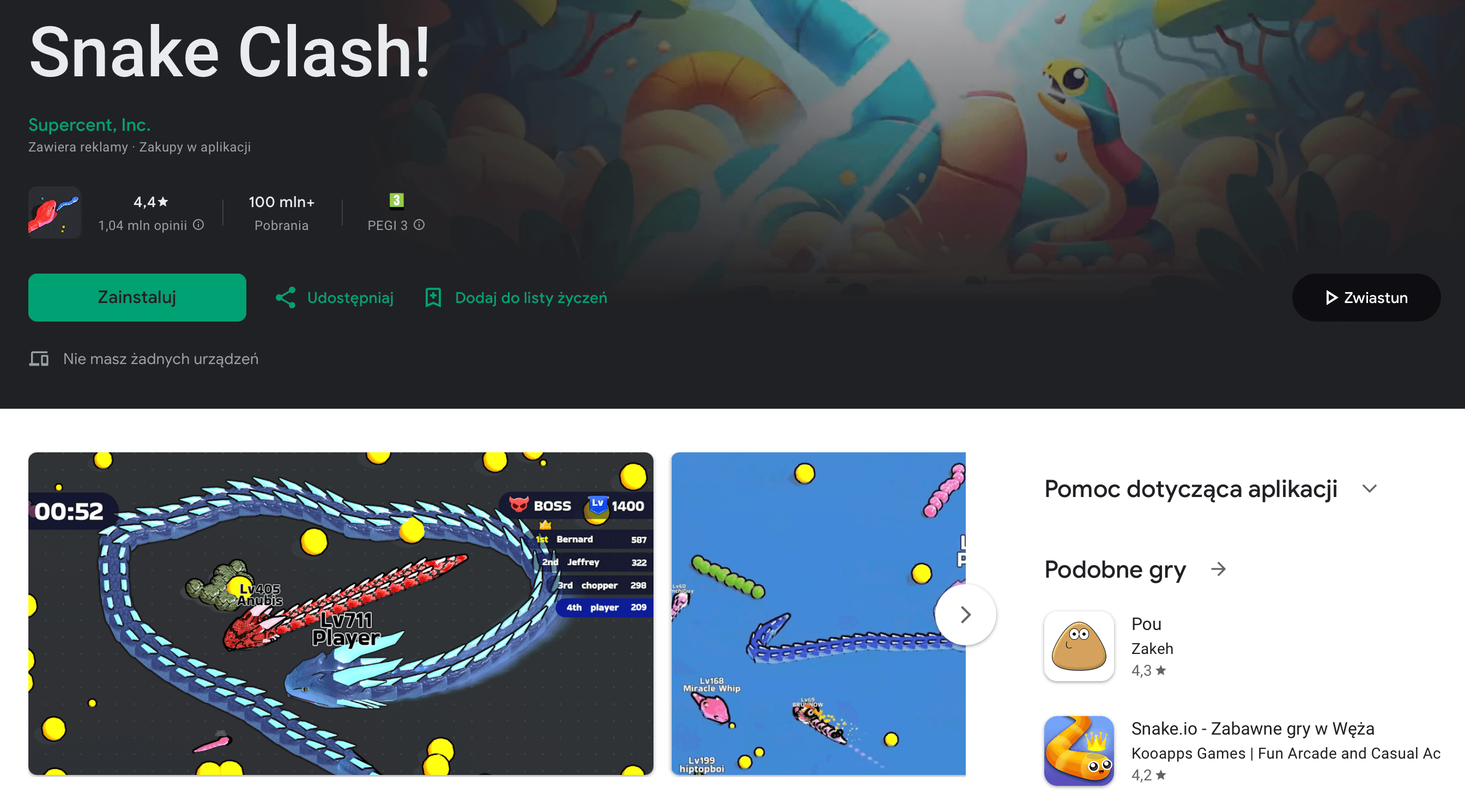 Nowoczesna wersja klasycznego „węża”, tym razem z rywalizacją i power-upami. Szybkie tempo rozgrywki sprawia, że to idealna gra „jeszcze jedna runda i koniec”.