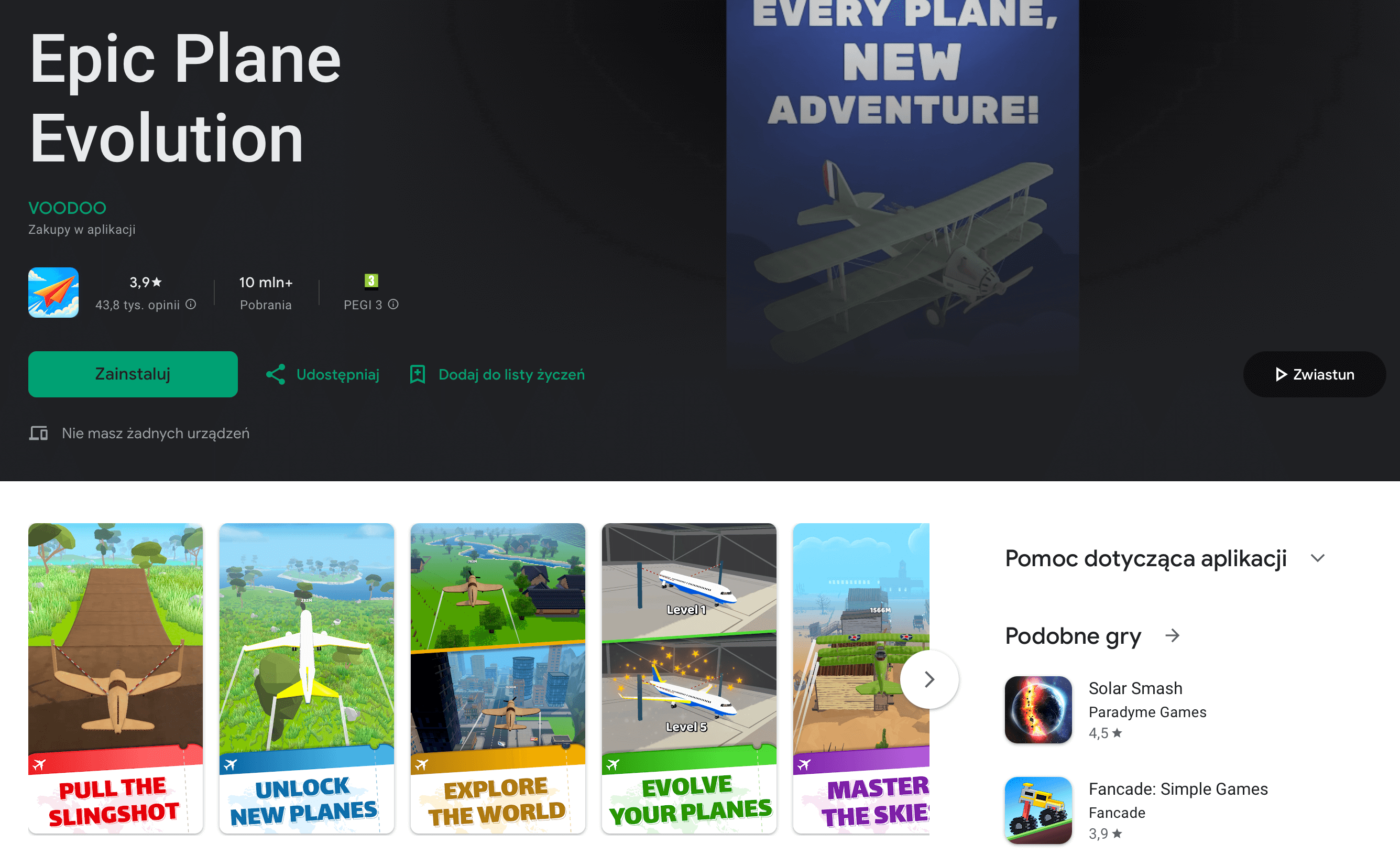 Dynamiczna gra akcji z samolotami, ulepszeniami i prostą, ale wciągającą mechaniką. Typowy „voodoo–kliker” – łatwy do ogarnięcia, trudny do odłożenia.