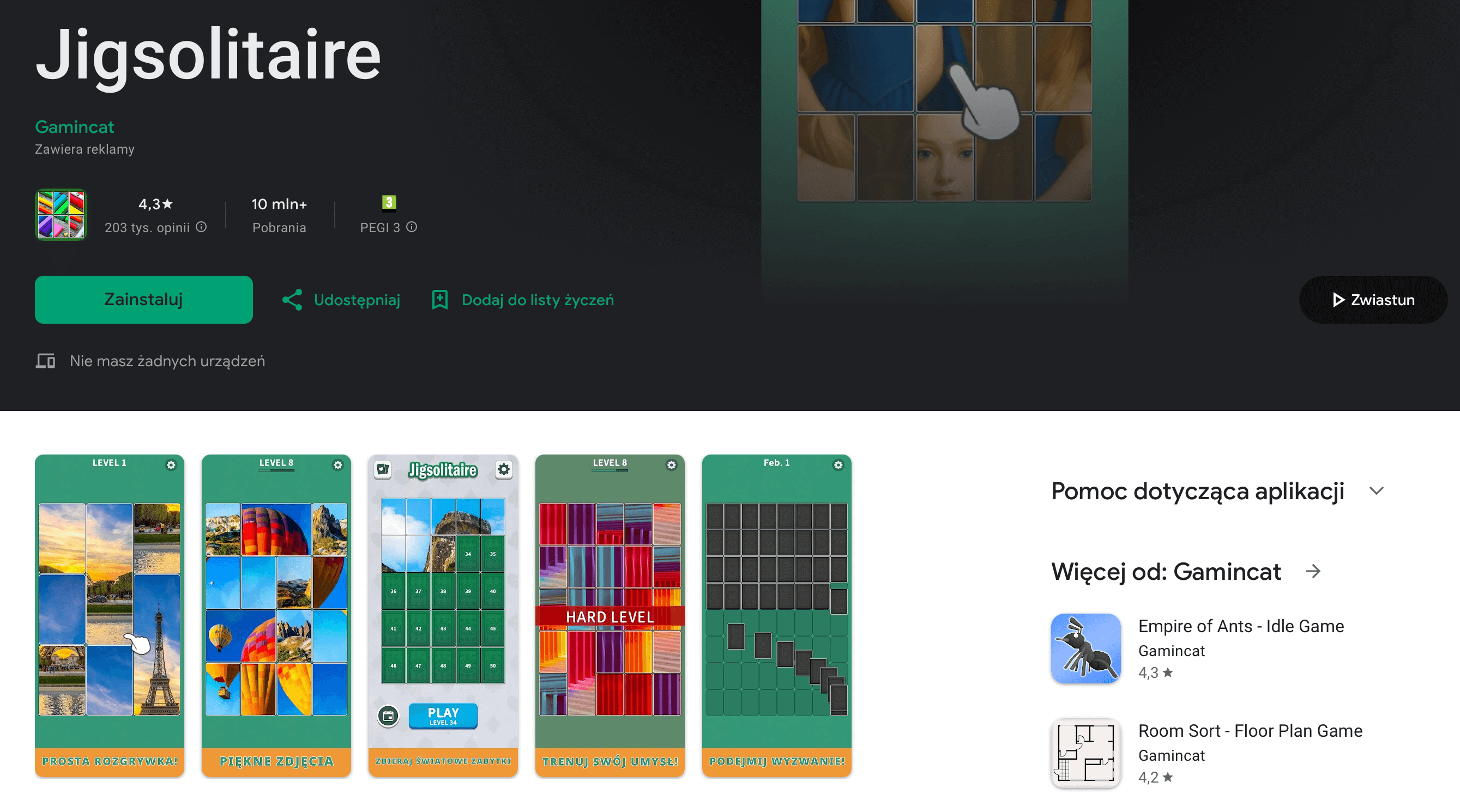Połączenie pasjansa i puzzli – wyjątkowe, ale szybko wciągające. Gra jest świetnym przykładem, że z prostych zasad można zrobić hit na miliony pobrań.