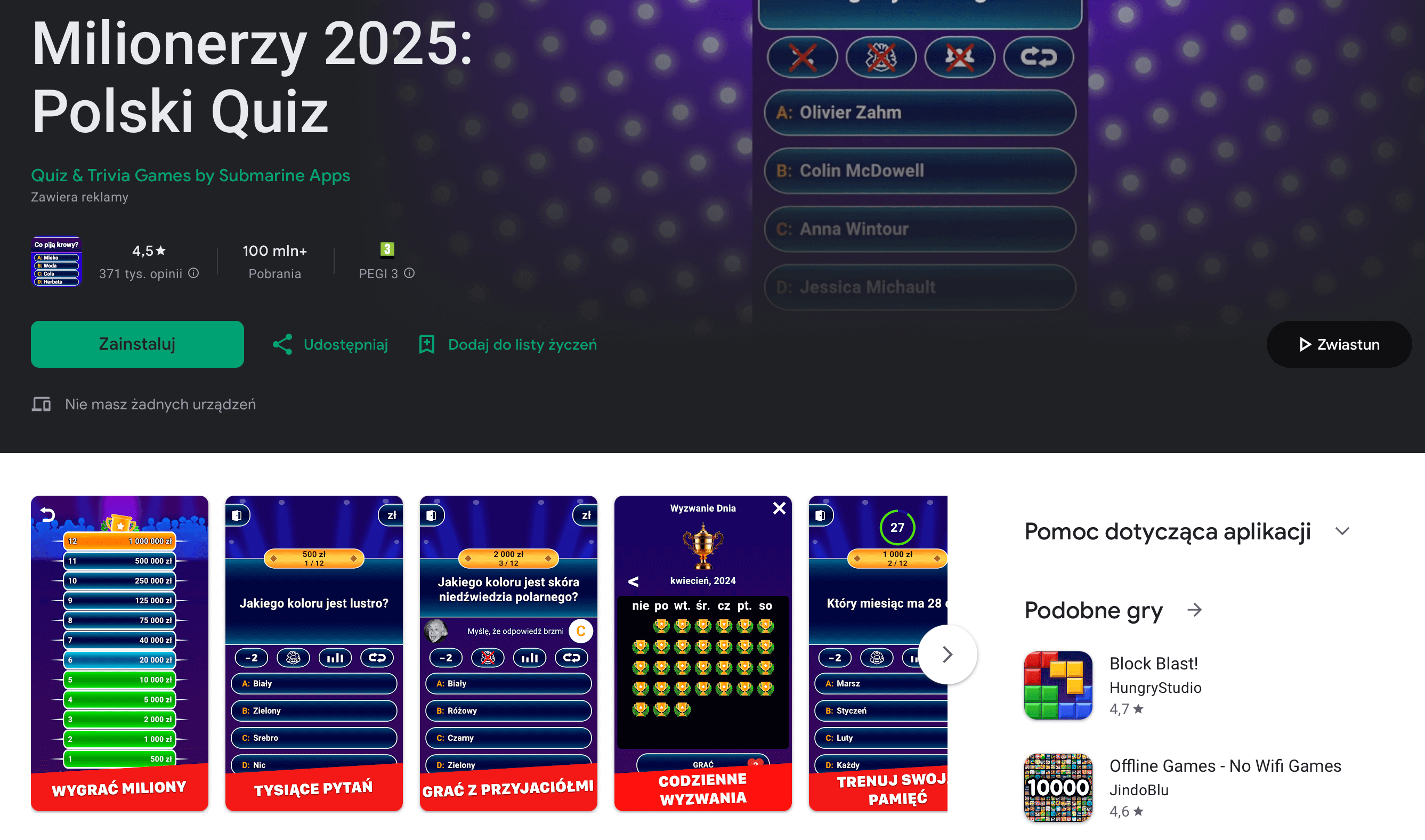 Kategoria: Gry quizowe | Wydawca: Quiz & Trivia Games by Submarine Apps