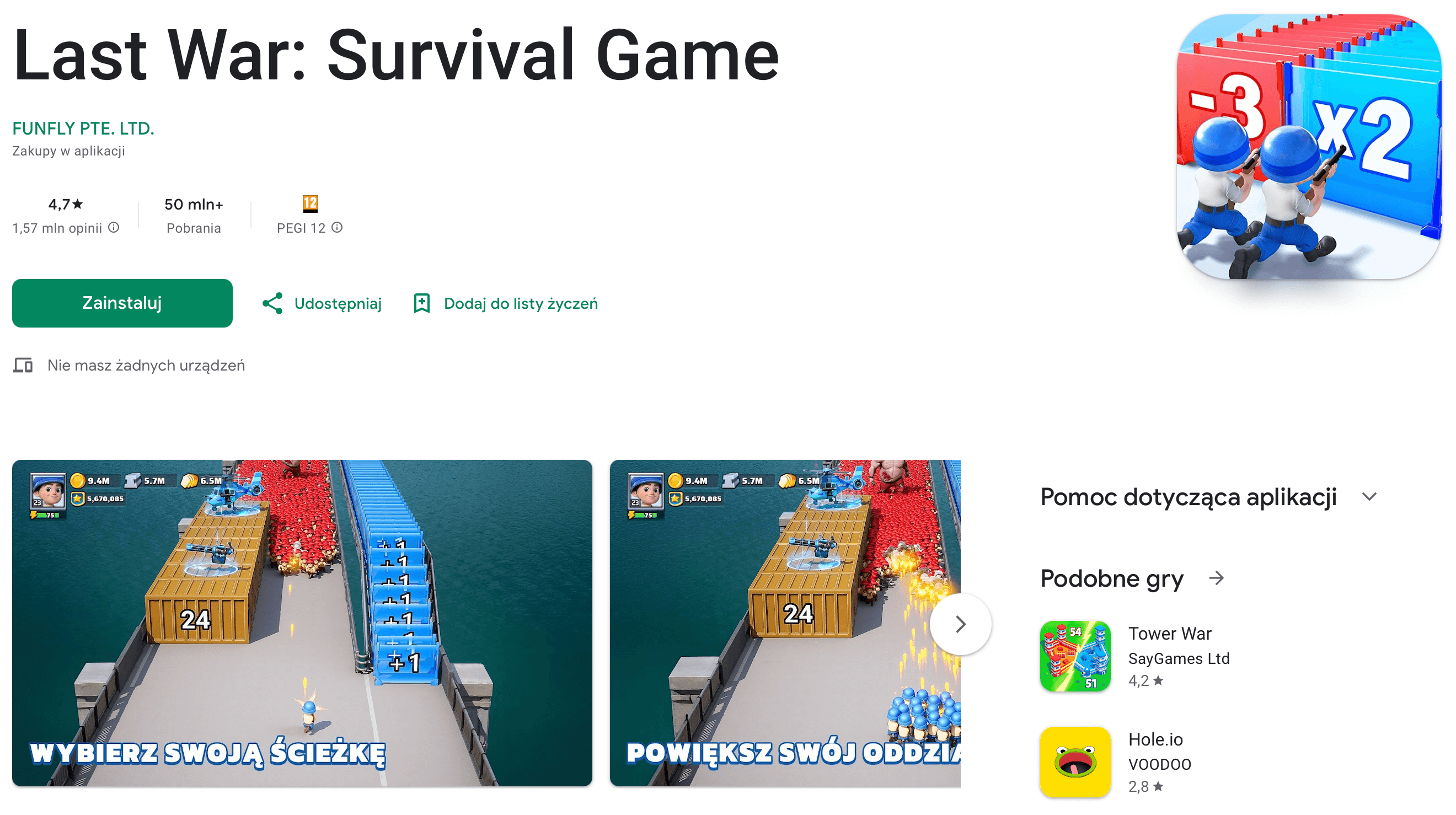 TOP 50 najczęściej pobieranych gier na Androida w Polsce w 2025